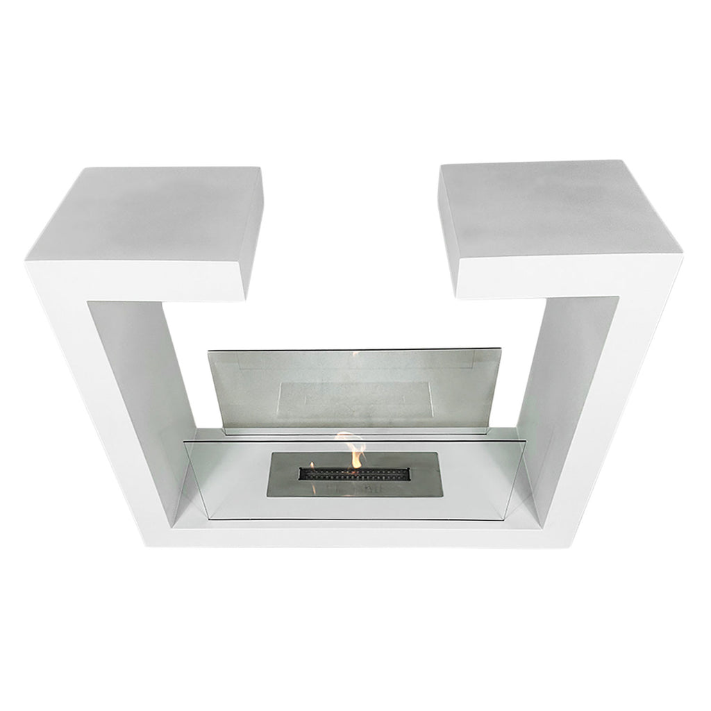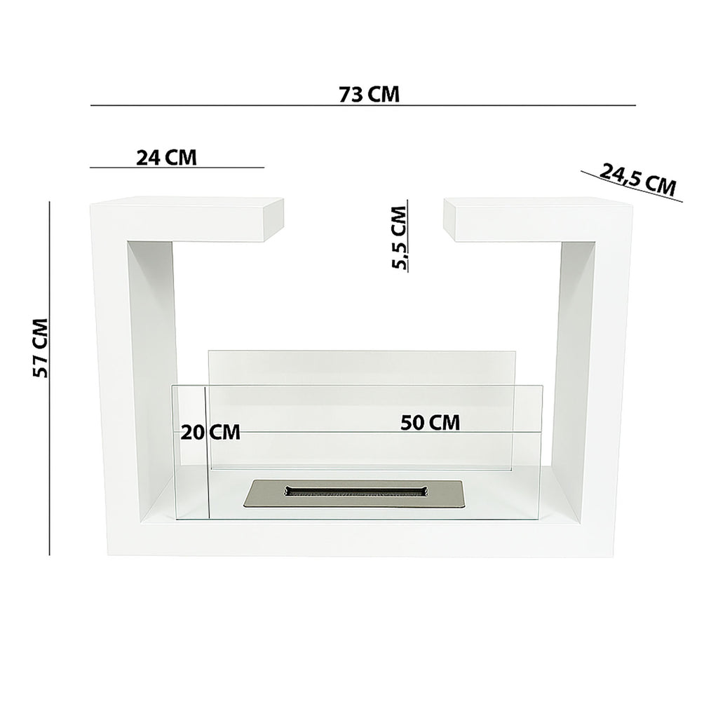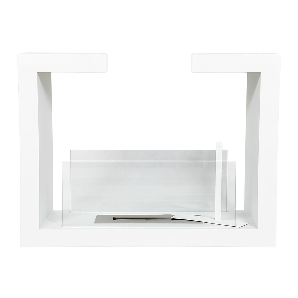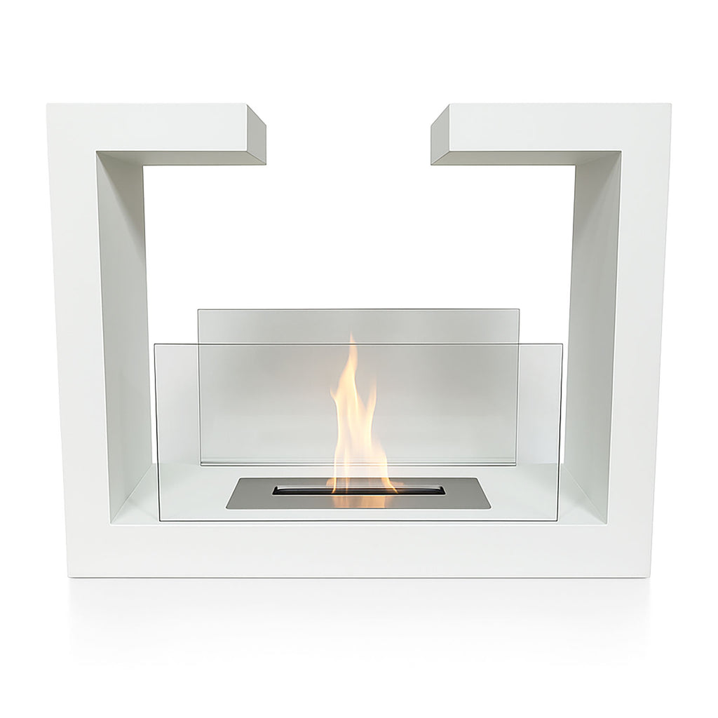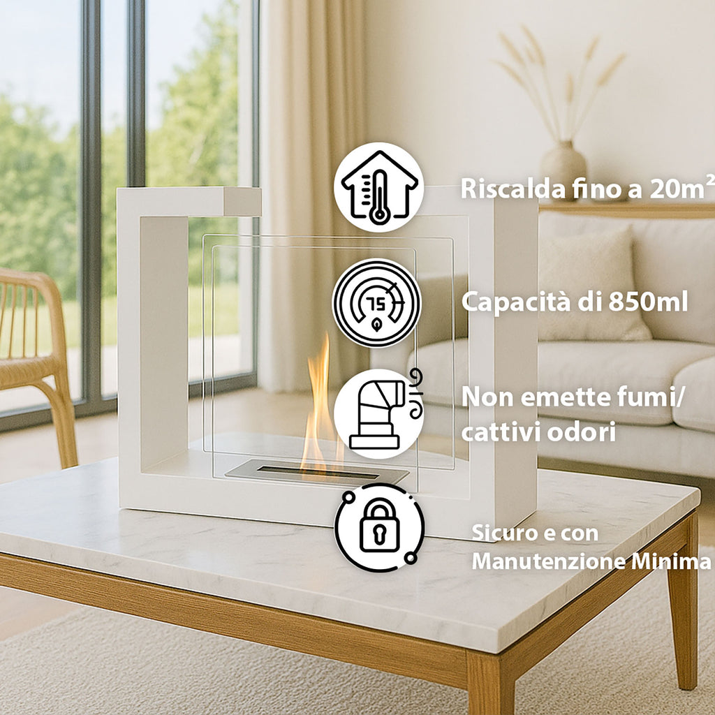 Camino a Bioetanolo da Terra Venus Free Standing Geometrico e Vetri Protettivi Serbatoio 850 ml in Acciaio Verniciato Bianco
