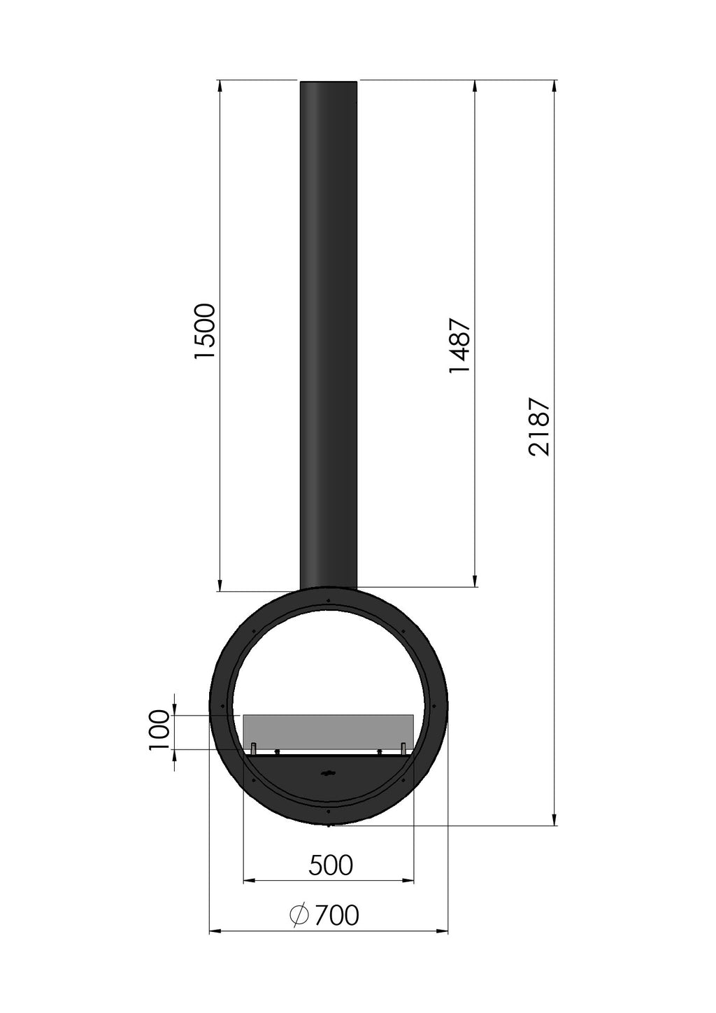 Camino a Bioetanolo Sospeso 218,7xØ70x35 cm Incyrcle 2Side Nero con Vetro
