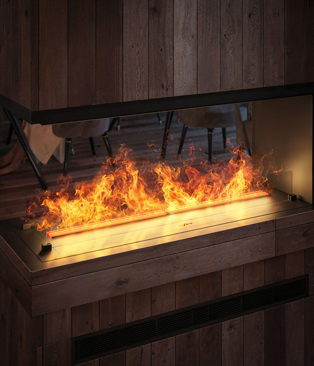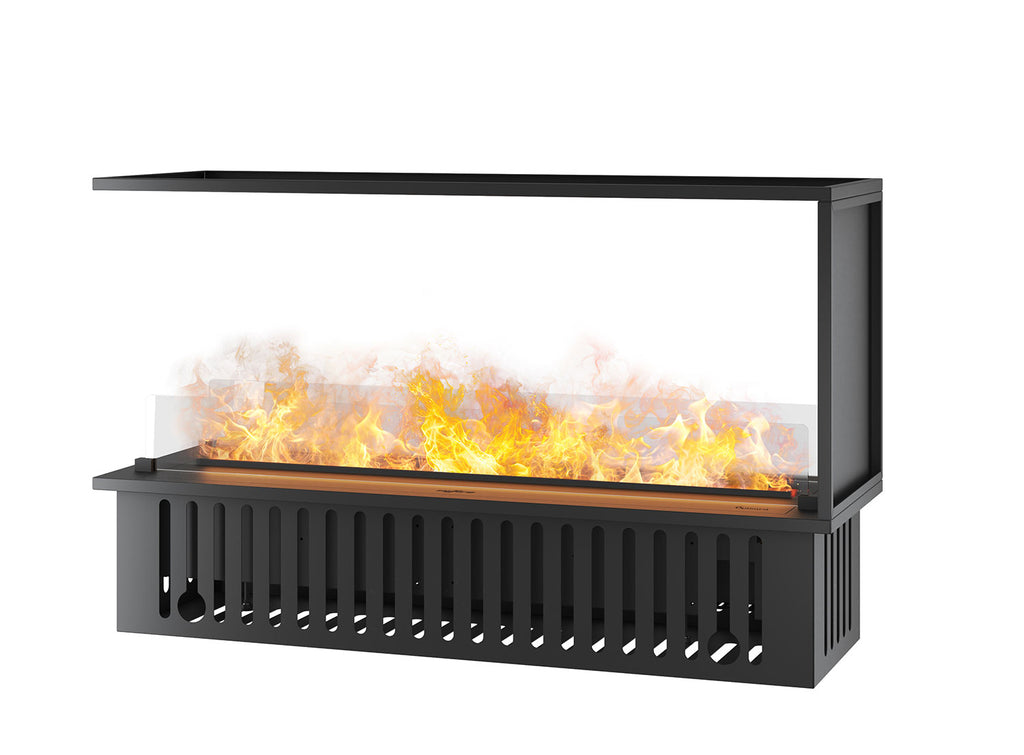 Realizzato con materiali di alta qualità, come l'acciaio verniciato a polvere, il camino garantisce durabilità e resistenza nel tempo. Il vetro curvo da 2 x 4 mm, montato su supporti magnetici, aggiunge un ulteriore tocco di eleganza e sicurezza. Inoltre, la funzione di ricarica automatica dell'acqua ti permette di goderti l'effetto fuoco ininterrottamente, senza preoccuparti di rabbocchi manuali.