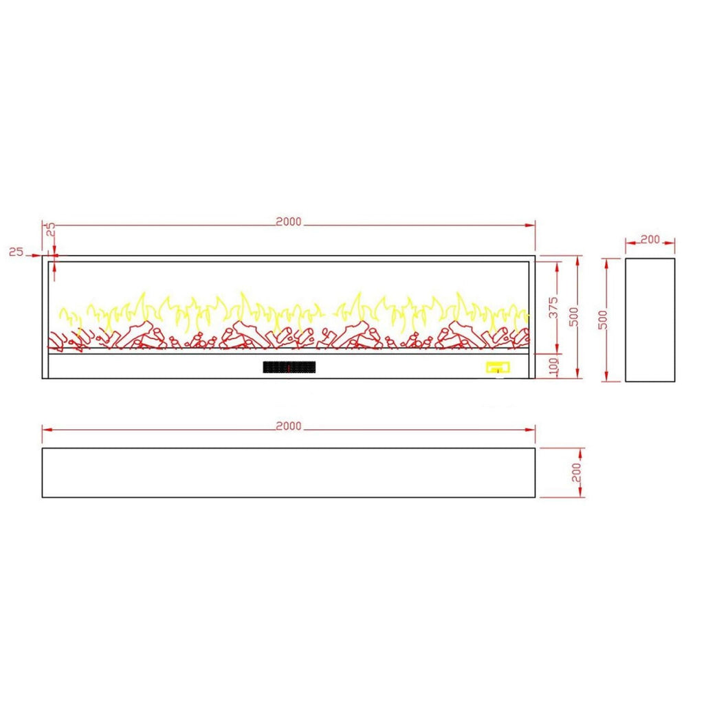 Elektrischer Einbaukamin 50,7 x 20 x 200 cm 1500 W Flammeneffekt Sined Vesuvio Schwarz