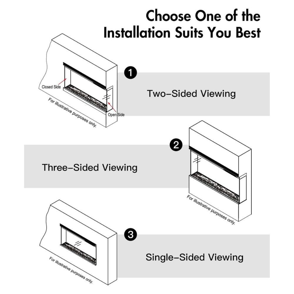 Camino Elettrico Da Parete A Incasso 3 Lati 101,6x20x44 cm Boston Nero
