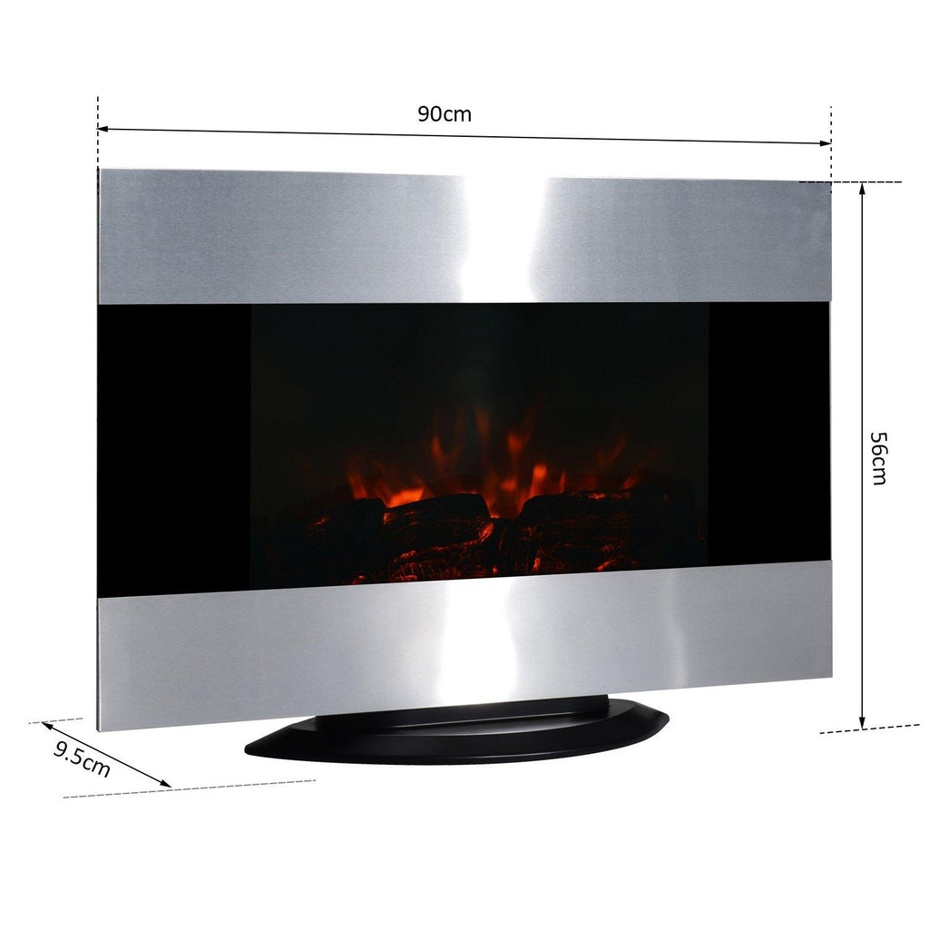 Elektrischer Wand- oder Bodenkamin Flammeneffekt 1000 W/2000 W Edelstahl und Schwarz