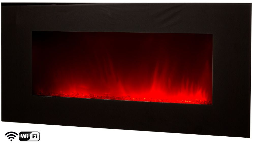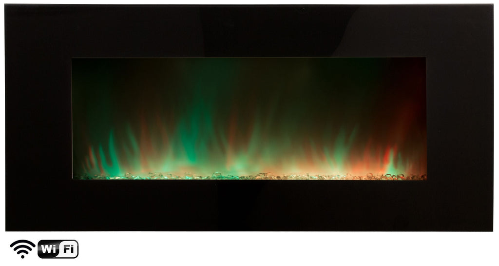 Volcano XXL WIFI-Modell Wandkamin mit LED-Beleuchtung mit Farbwechsel: 12 Farben unter den Varianten Rot, Grün, Blau, Gelb. Dank der für Android und Iphone erhältlichen App können Sie den Thermostat sowie die Stunden- und Tagesprogrammierung direkt von Ihrem Mobiltelefon aus anpassen. Ultra realistischer Flammeneffekt dank der LEDs mit Chemin'Arte-Technologie. Es heizt und versorgt einen Raum von ca. 30 m2. Fernbedienung enthalten.