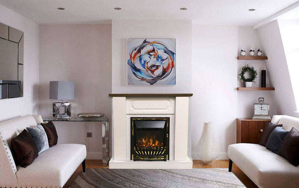 Camino Elettrico da Pavimento 101x100x30 cm Effetto Fiamma 2000W Asoli & Meridian Bianco/noce
