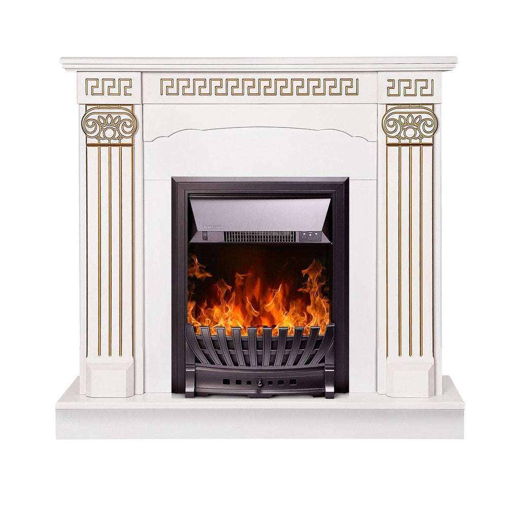 Camino Elettrico da Pavimento 102x110x30 cm Effetto Fiamma 2000W Calisto & Pluton Bianco
