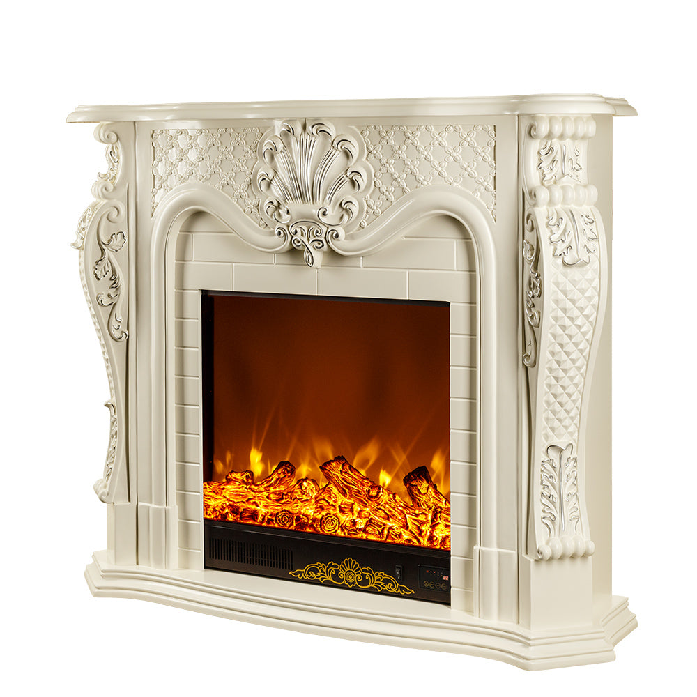 Camino Elettrico da Pavimento 102x120x33 cm Effetto Fiamma 1500W Perla mini Bianco