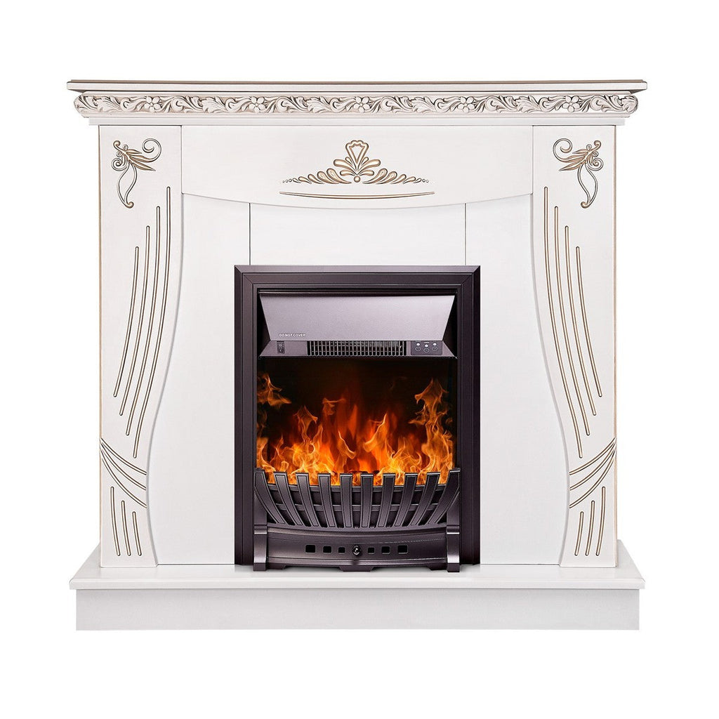 Camino Elettrico da Pavimento 103,5x110x30 cm Effetto Fiamma 2000W Napoli & Pluton Bianco