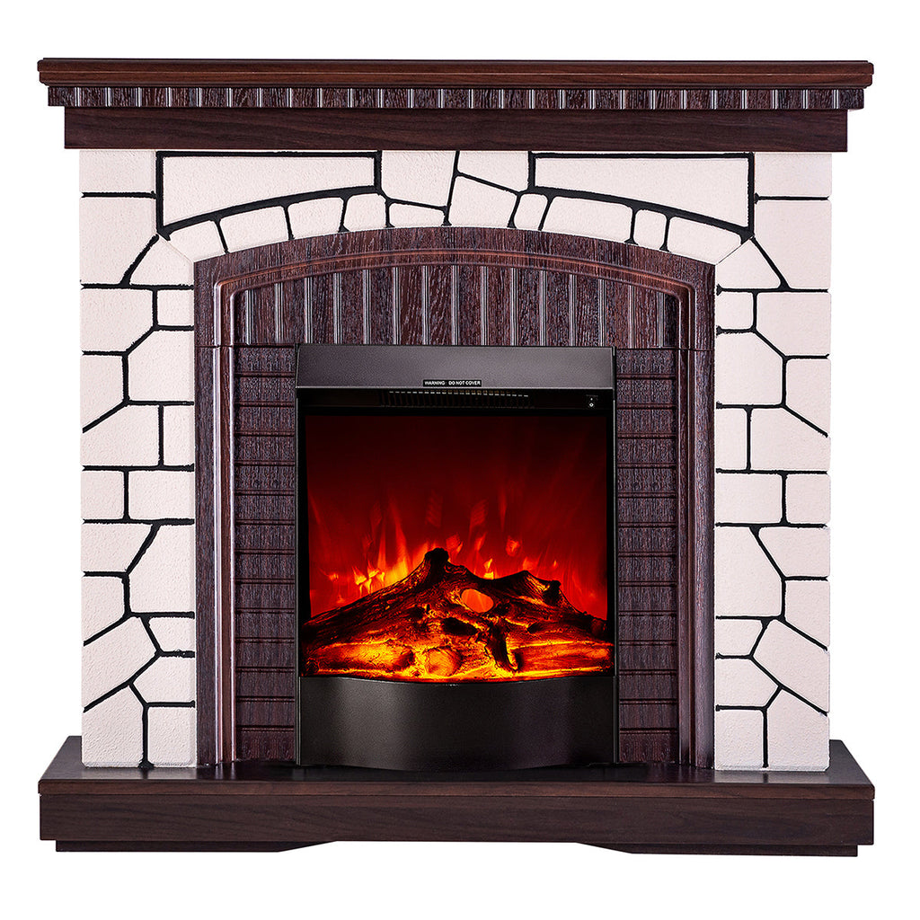 Camino Elettrico da Pavimento 105,8x110x30 cm Effetto Fiamma 1600W Natali & Corsica Bianco/noce scuro