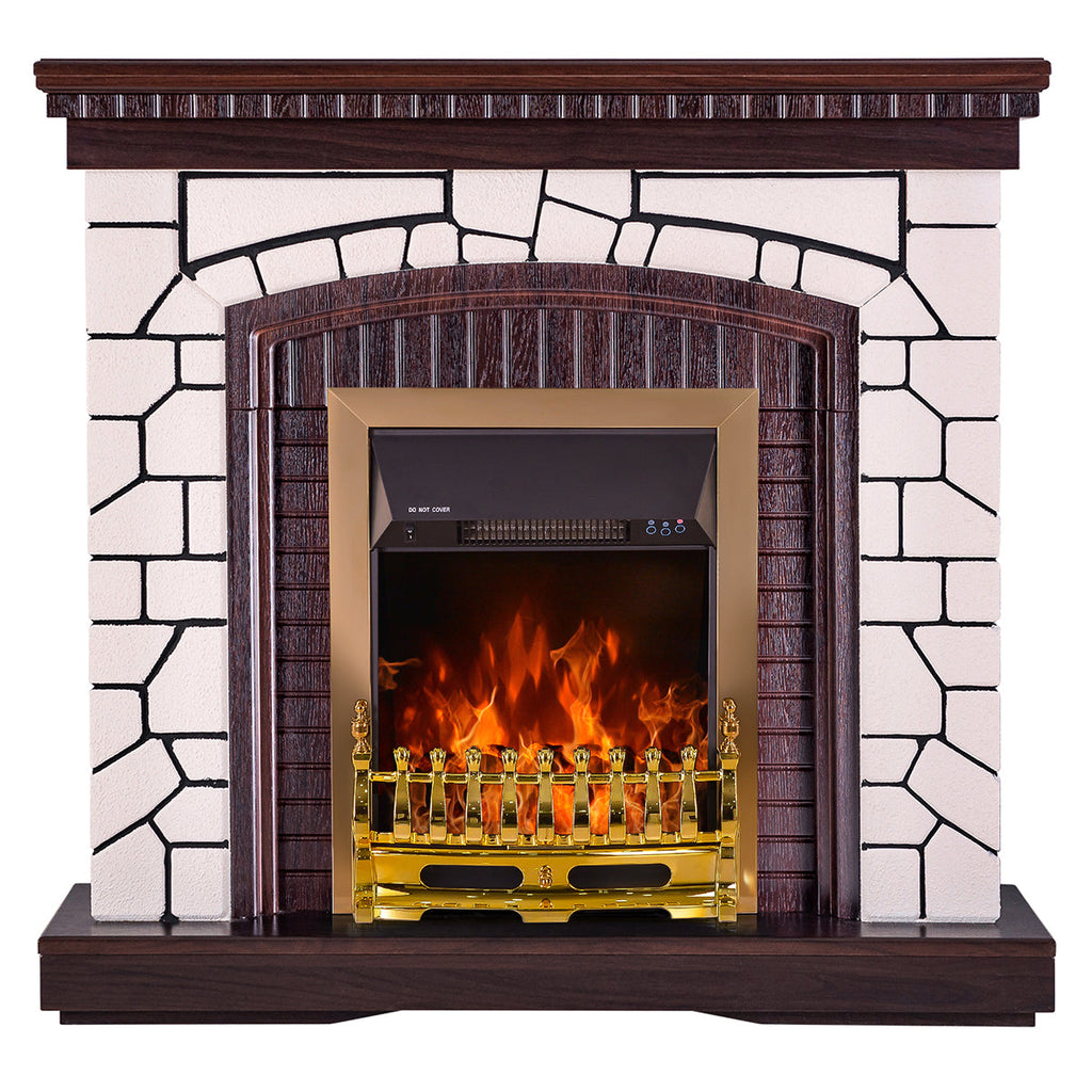 Camino Elettrico da Pavimento 105,8x110x30 cm Effetto Fiamma 2000W Natali & Galileo Gold Bianco/noce scuro