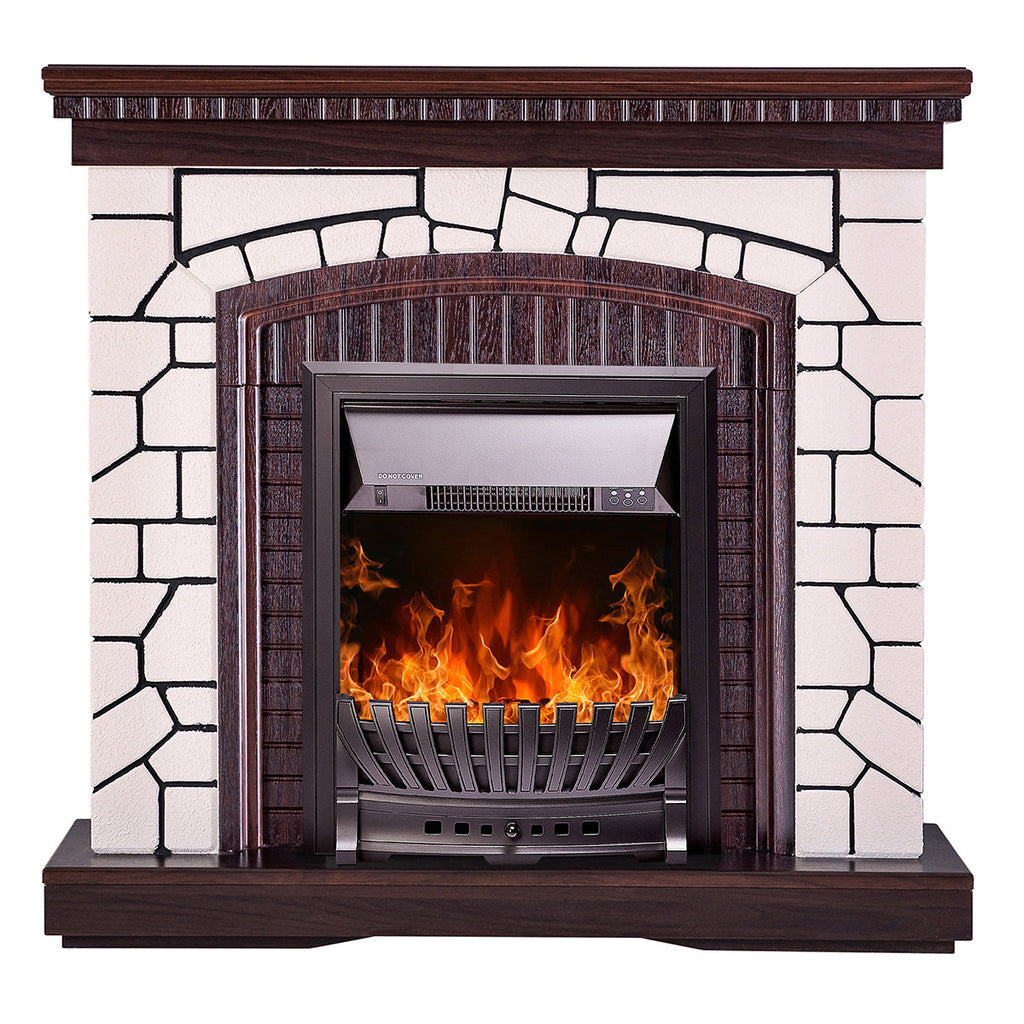 Camino Elettrico da Pavimento 105,8x110x30 cm Effetto Fiamma 2000W Natali & Pluton Bianco/noce scuro