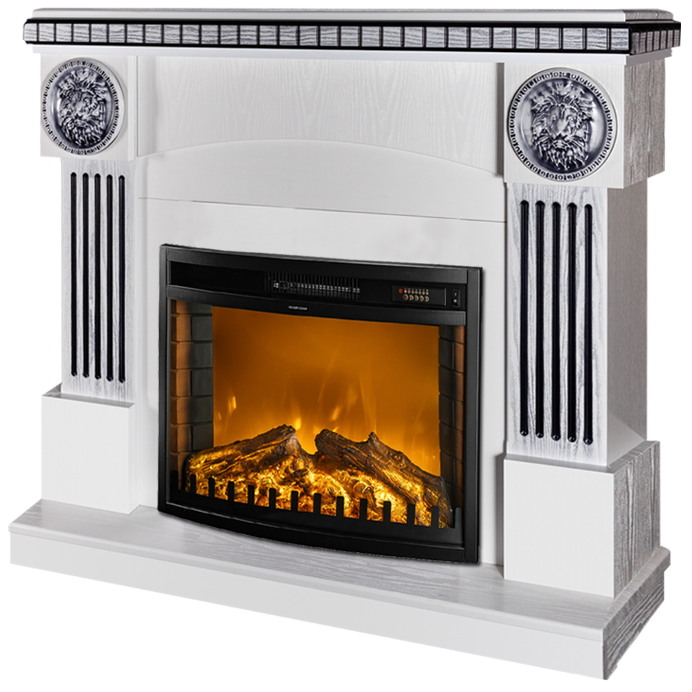 Camino Elettrico da Pavimento 105x120x33 cm Effetto Fiamma 1500W Prometeu & Zakinthos Bianco/nero