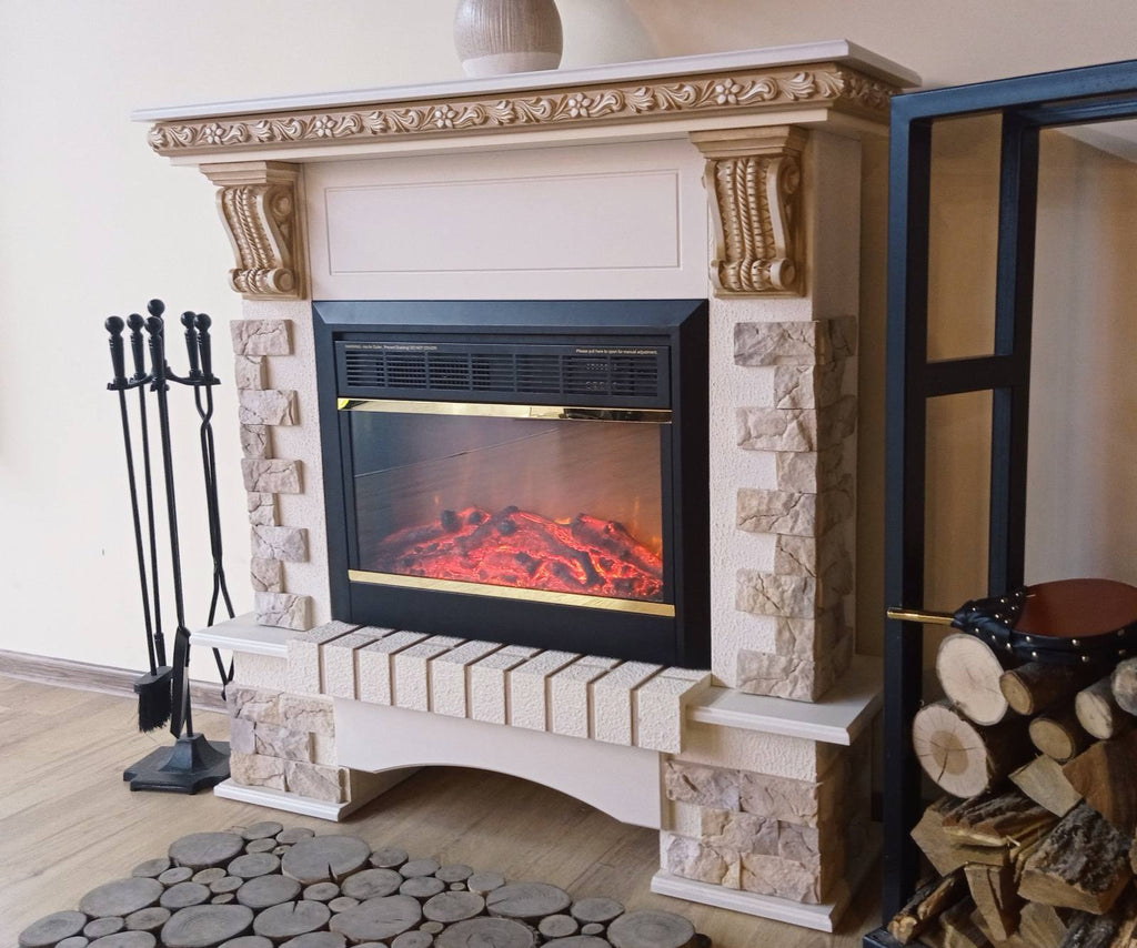 Il camino Topaz è realizzato in MDF di alta qualità con una struttura unica, che riproduce la forma del legno naturale. I set da camino non richiedono particolari capacità di installazione, poiché vengono consegnati assemblati e pronti per l'uso. Grazie al design unico, il camino Topaz e Vlad, si adatta perfettamente a una casa o appartamento. Il portale Topaz combina perfettamente stili classici e moderni. È fatto sul colore del gelsomino con pietra artificiale su colonne. L'imitazione di alta qualità della fiamma del camino elettrico Vlad darà una sensazione di relax. La funzionalità di questo modello consente di utilizzare la fiamma separatamente dalla modalità di riscaldamento, in modo da poterla apprezzare anche nella stagione calda.Caratteristiche Tecniche