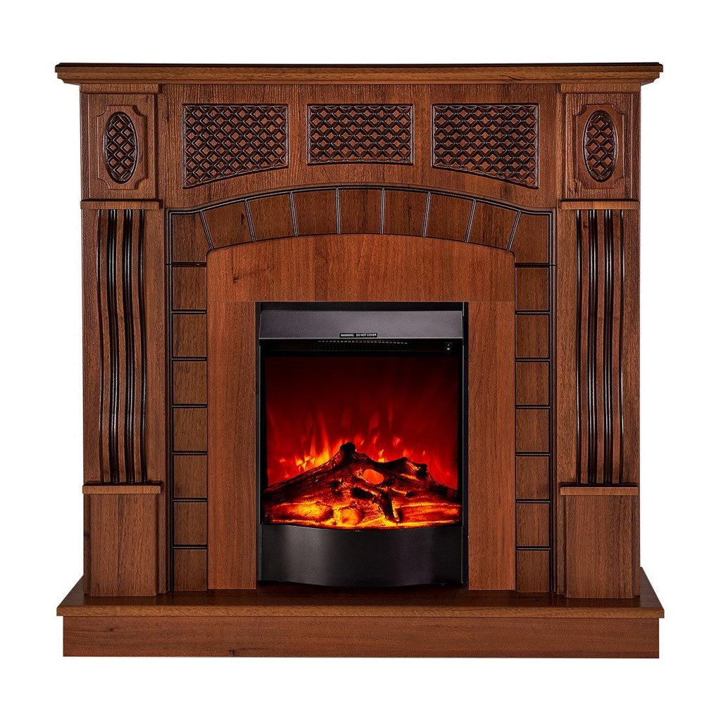 Camino Elettrico da Pavimento 112x115x30 cm Effetto Fiamma 1600W Amsterdam & Corsica Noce