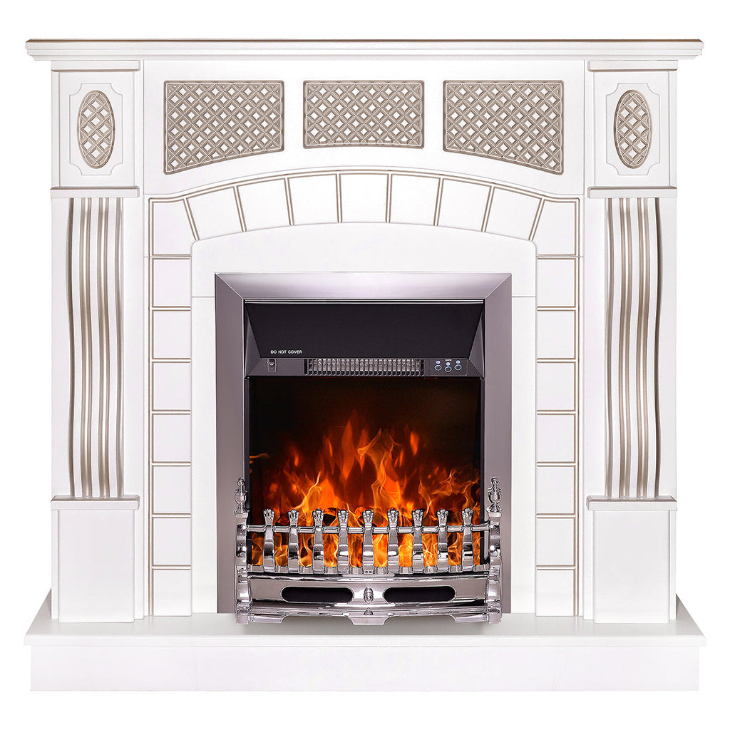 Camino Elettrico da Pavimento 112x115x30 cm Effetto Fiamma 2000W Amsterdam & Galileo Silver Noce