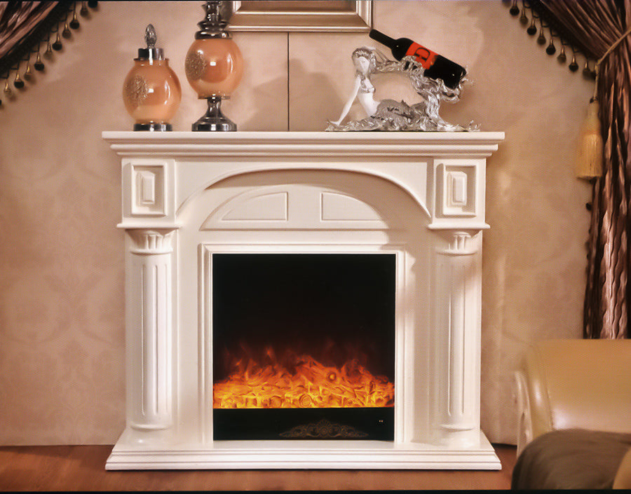 Camino Elettrico da Pavimento 116x150x33 cm Effetto Fiamma 1500W Lisabona Bianco