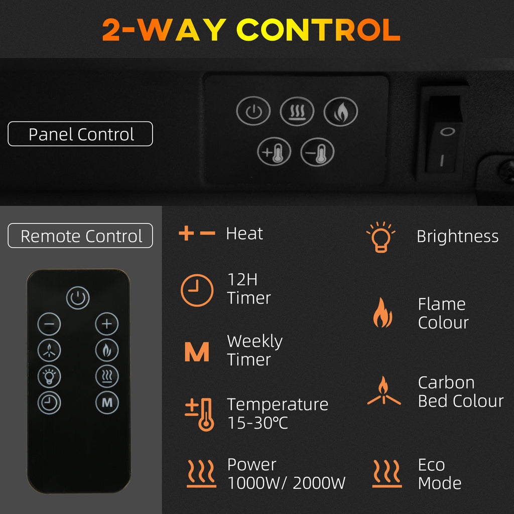 - TIMER DA 12H: Questo caminetto elettrico con cornice è dotato di un timer di 12 ore per tenerlo in funzione mentre si dorme o si è occupati, mentre il riscaldamento si spegne allo scadere del tempo. Il timer settimanale consente di impostare un programma di riscaldamento. È necessario il montaggio