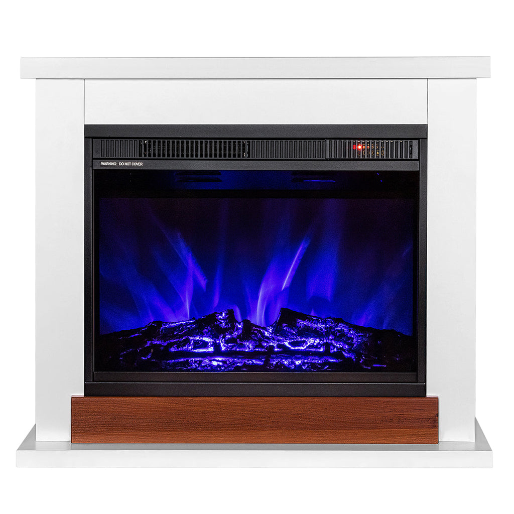 Camino Elettrico da Pavimento 70x80x30 cm Effetto Fiamma 1500W Sting & Lorance Bianco/noce