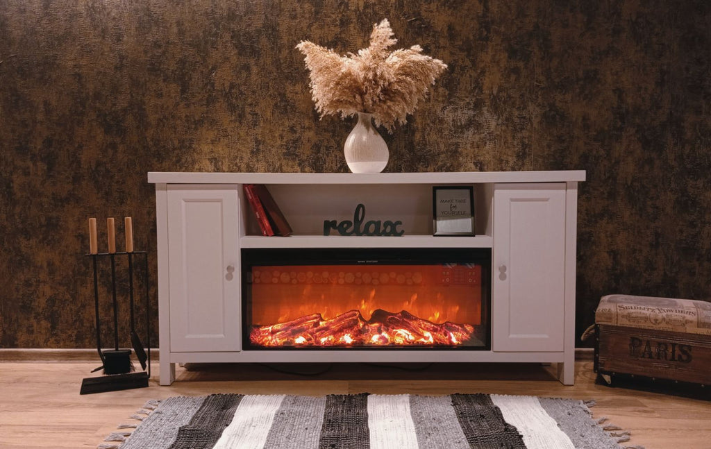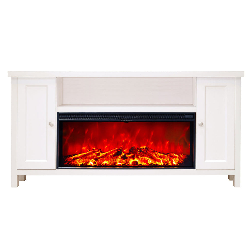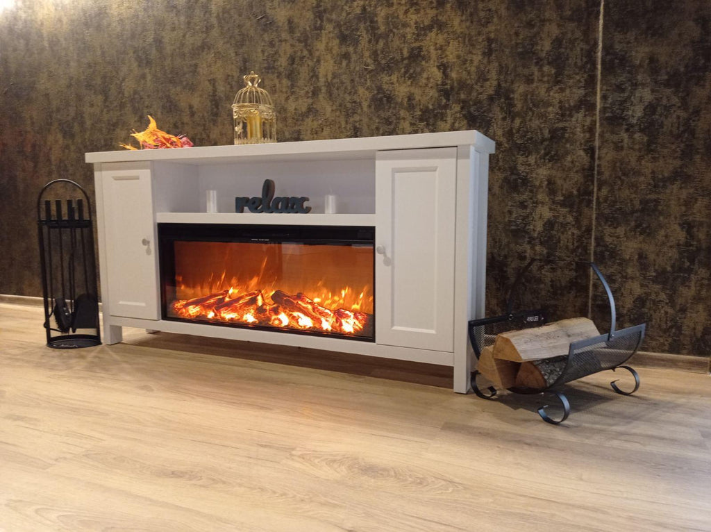 Camino Elettrico da Pavimento 75x150x30 cm Effetto Fiamma 1500W Mozart & Tasmania Bianco