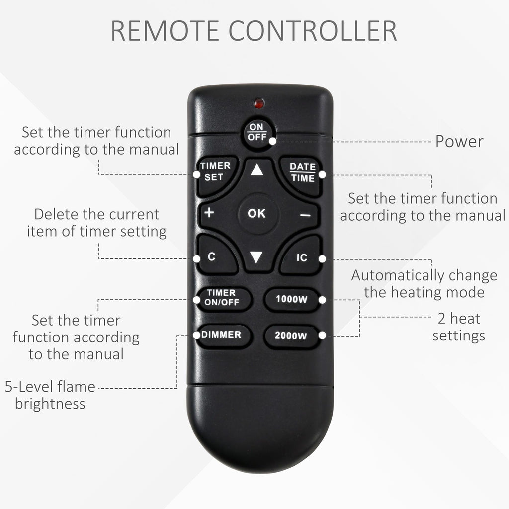 Machen Sie Ihren Raum mit diesem elektrischen Kamin noch einladender. Es verfügt über zwei Heizmodi (1000 W und 2000 W) und beheizt einen Raum von 20-25?. Der Flammeneffekt ist realistisch und kann auch unabhängig von der Funktion „Heizen“ verwendet werden, um eine winterliche Atmosphäre im Wohnzimmer, Schlafzimmer oder Büro zu schaffen.