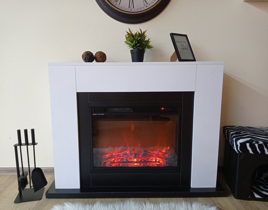 Camino Elettrico da Pavimento 85,5x115x27 cm Effetto Fiamma 1500W Brooklyn & Lorance Bianco/nero