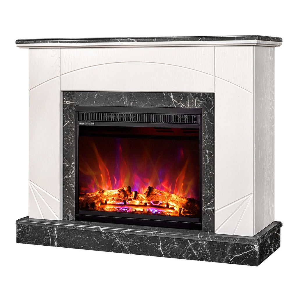 Camino Elettrico da Pavimento 85x110x27 cm Effetto Fiamma 1500W Madeira lux & Lorance Ivory/dark gray