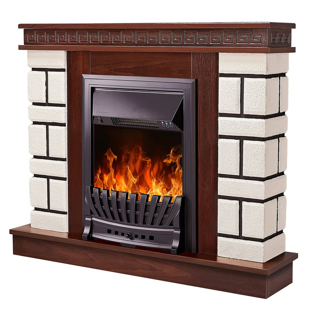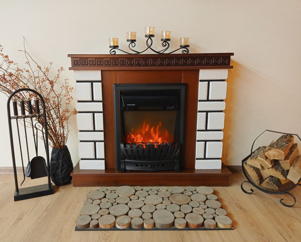 Camino Elettrico da Pavimento 87,4x108x24,5 cm Effetto Fiamma 2000W Nazarii mini & Pluton Noce