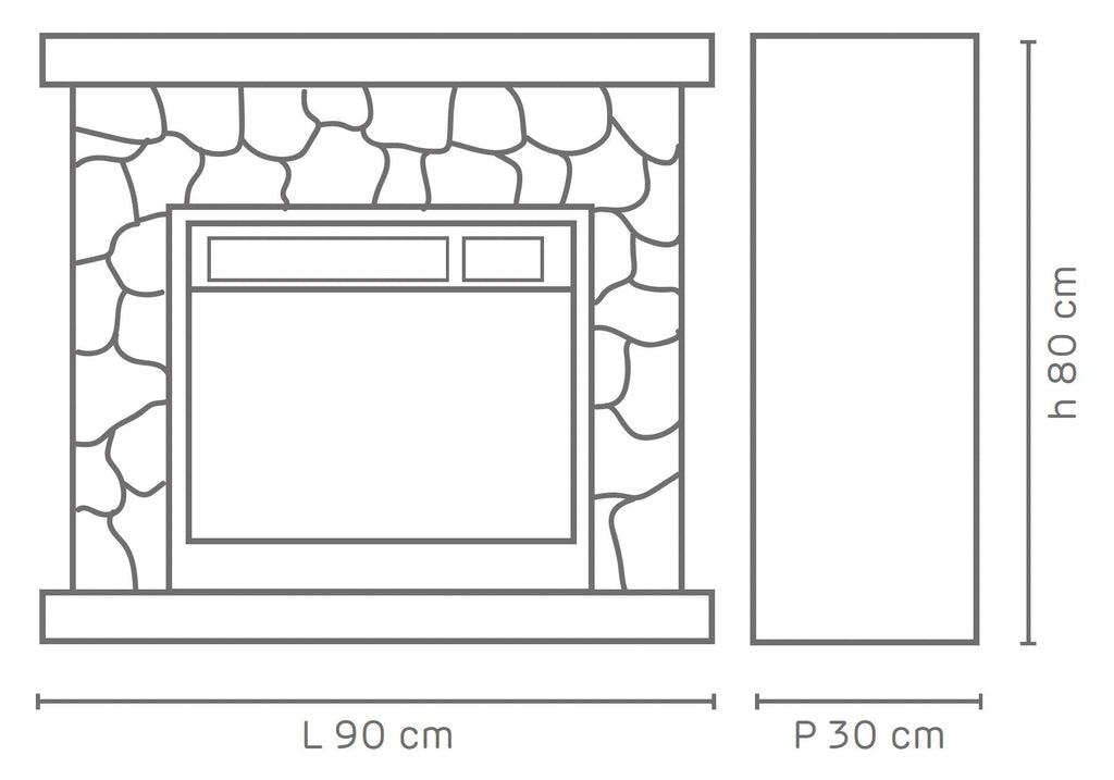Sasso Camino elettrico rifinito con effetto pietra ed effetto legno per top e base. Il camino è composto da un inserto elettrico in acciaio e una struttura in polyform. L’inserto elettrico ha due impostazioni di potenza (900W – 1800W); l’effetto fiamma è molto realistico e può essere utilizzato indipendentemente dal calore. L’altezza della fiamma è regolabile. Il camino è dotato di telecomando. Il funzionamento può essere regolato manualmente oppure programmato. Il timer prevede 3 programmi settimanali già preimpostati con la possibilità di modificare la programmazione in base alle proprie necessità.