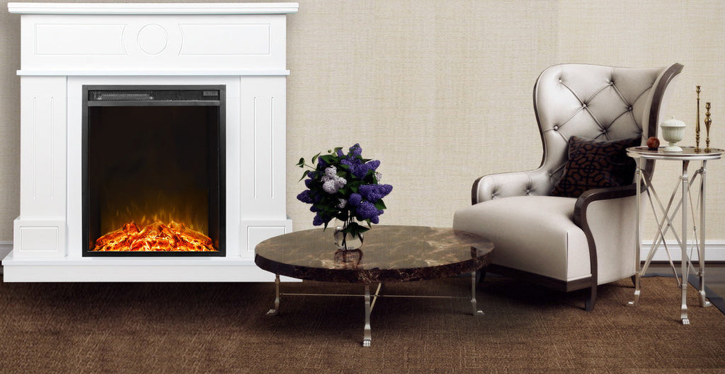 Camino Elettrico da Pavimento 97,8x104,8x30 cm Effetto Fiamma 1500W Ambassador & Miriam Bianco