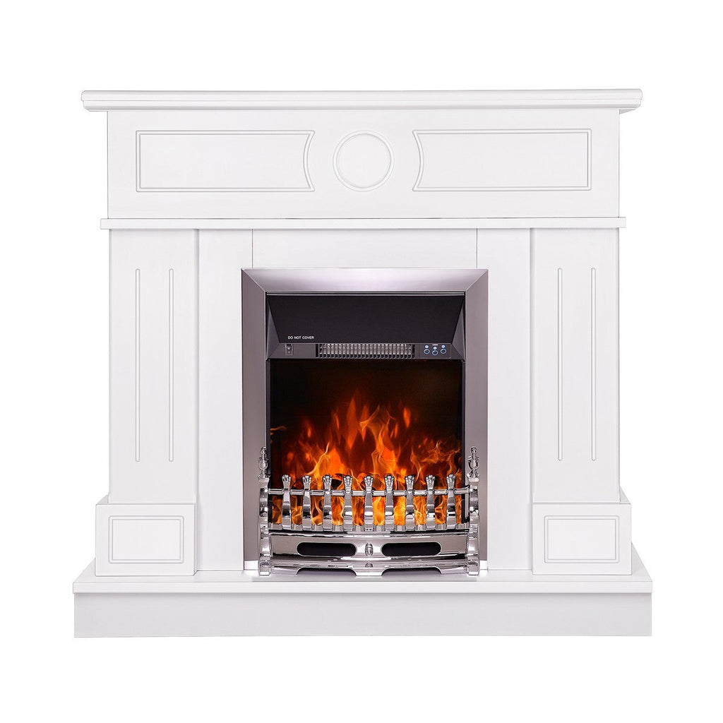 Camino Elettrico da Pavimento 97,8x104,8x30 cm Effetto Fiamma 2000W Ambassador & Galileo Silver Bianco