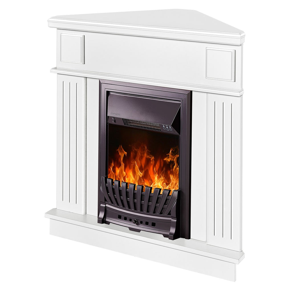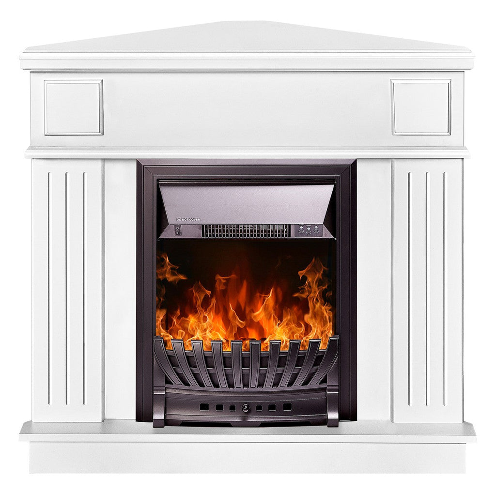 Camino Elettrico da Pavimento ad Angolo 100x100x50 cm Effetto Fiamma 2000W Marina & Pluton Bianco