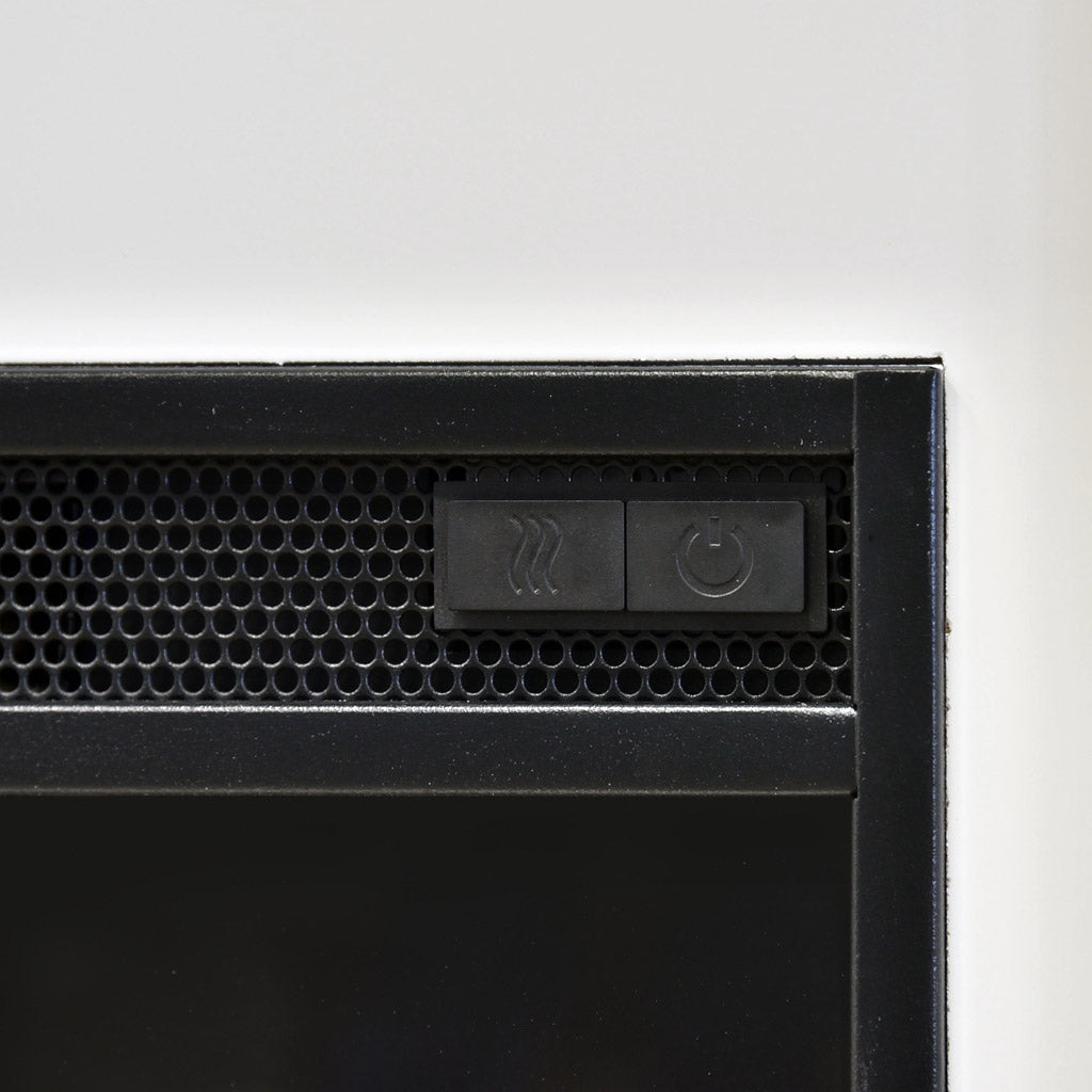 Das zeitlose Design von Elouise in der Elektroversion: Eine gehärtete Glasscheibe schützt den Kamin mit einem elegant gerahmten realistischen Aussehen. Die Wellenbewegung der Flamme und ihre Helligkeit sind einstellbar (4 Stufen verfügbar).