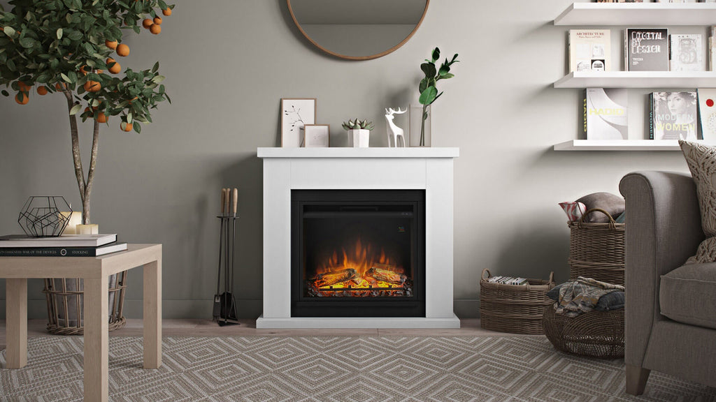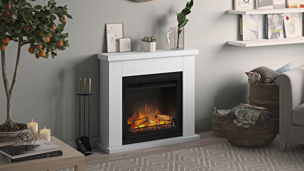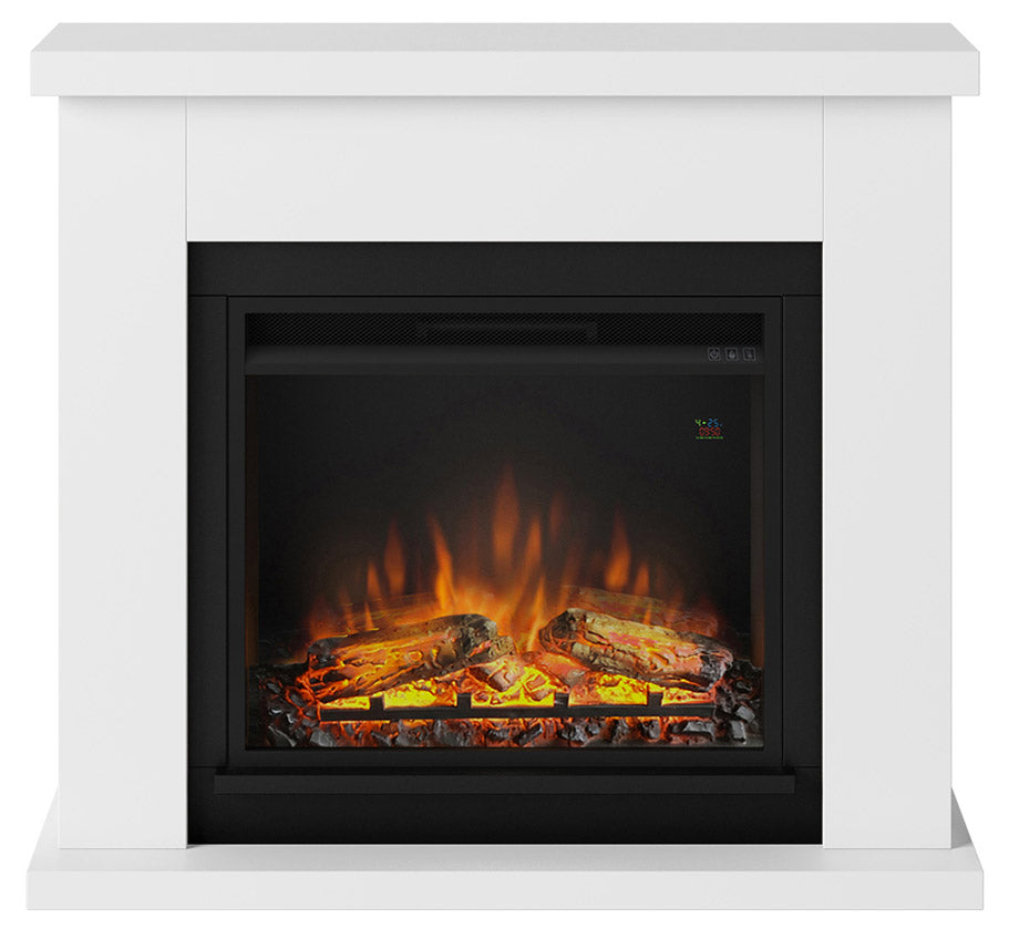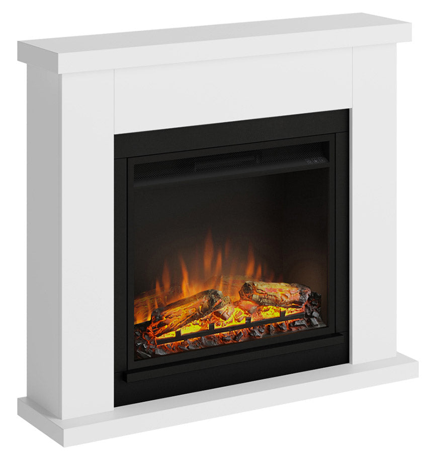 Fraud Elektrokamin Holzrahmenkamin 1500W mit 23 Zoll Elektrokamineinsatz, Fernbedienung, Farbe Weiß [Energieklasse A].