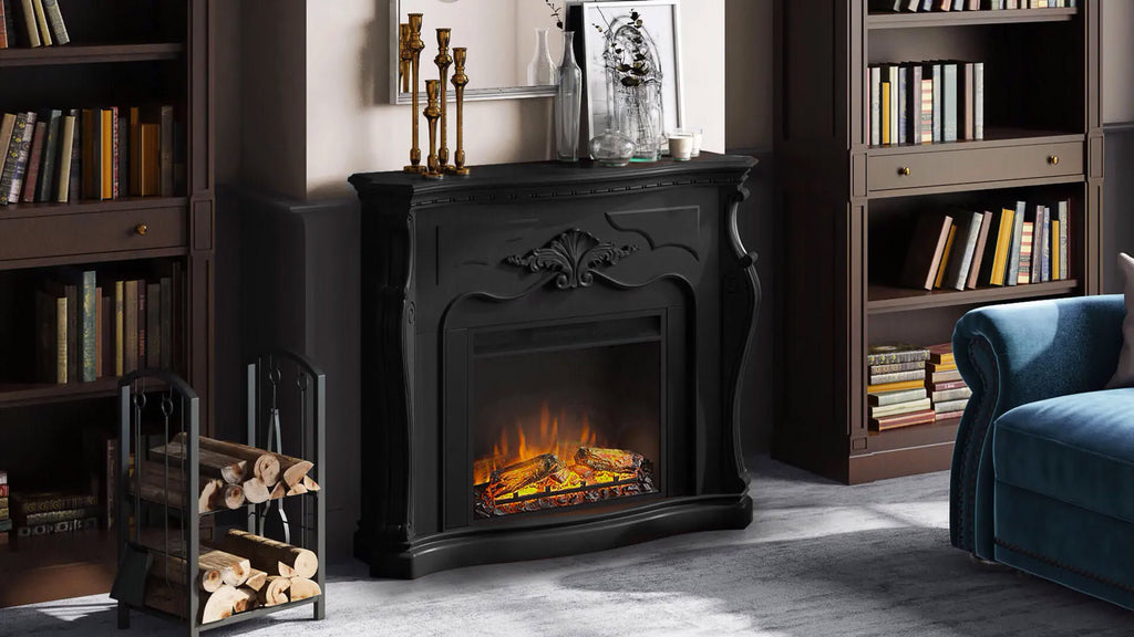 Gala Elektrokamin mit Holzrahmen 1500W Kamin mit 23 Zoll Elektrokamineinsatz, Fernbedienung, Farbe Schwarz.