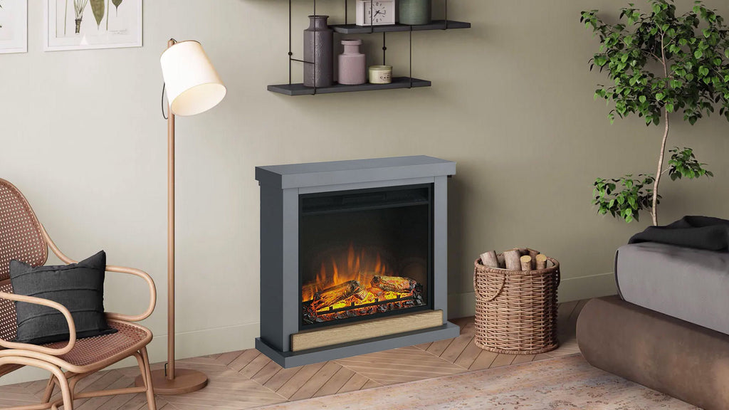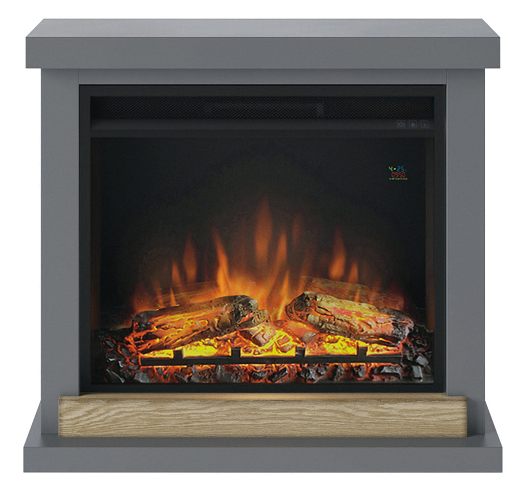 Hagen Elektrokamin mit Holzrahmen, 1500 W, Kamin mit 23-Zoll-Elektrokamineinsatz, Fernbedienung, Dunkelgrau.