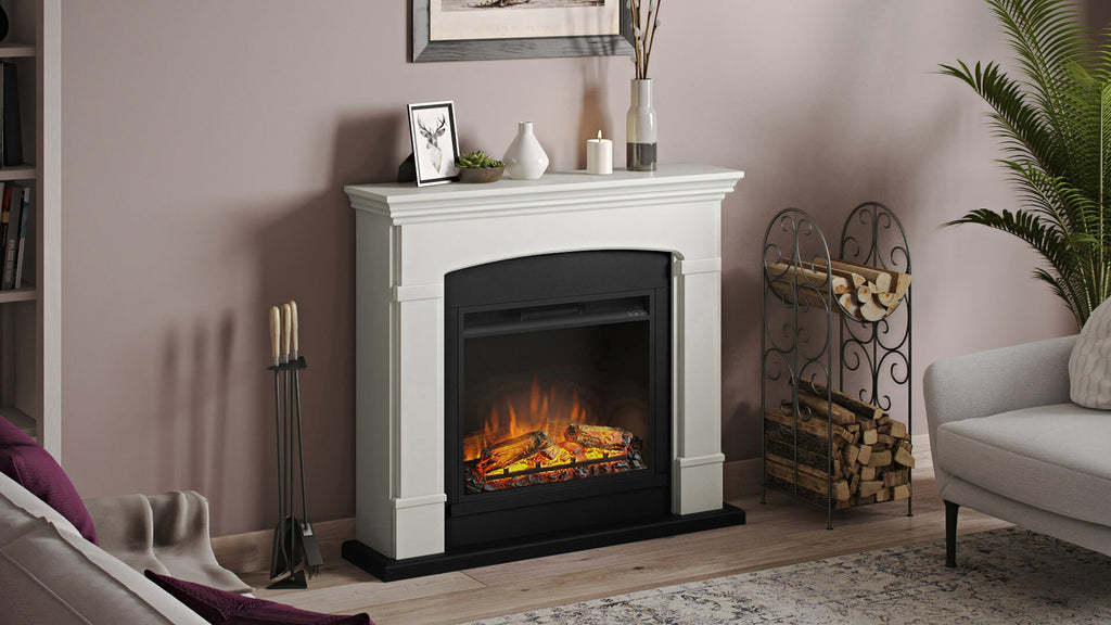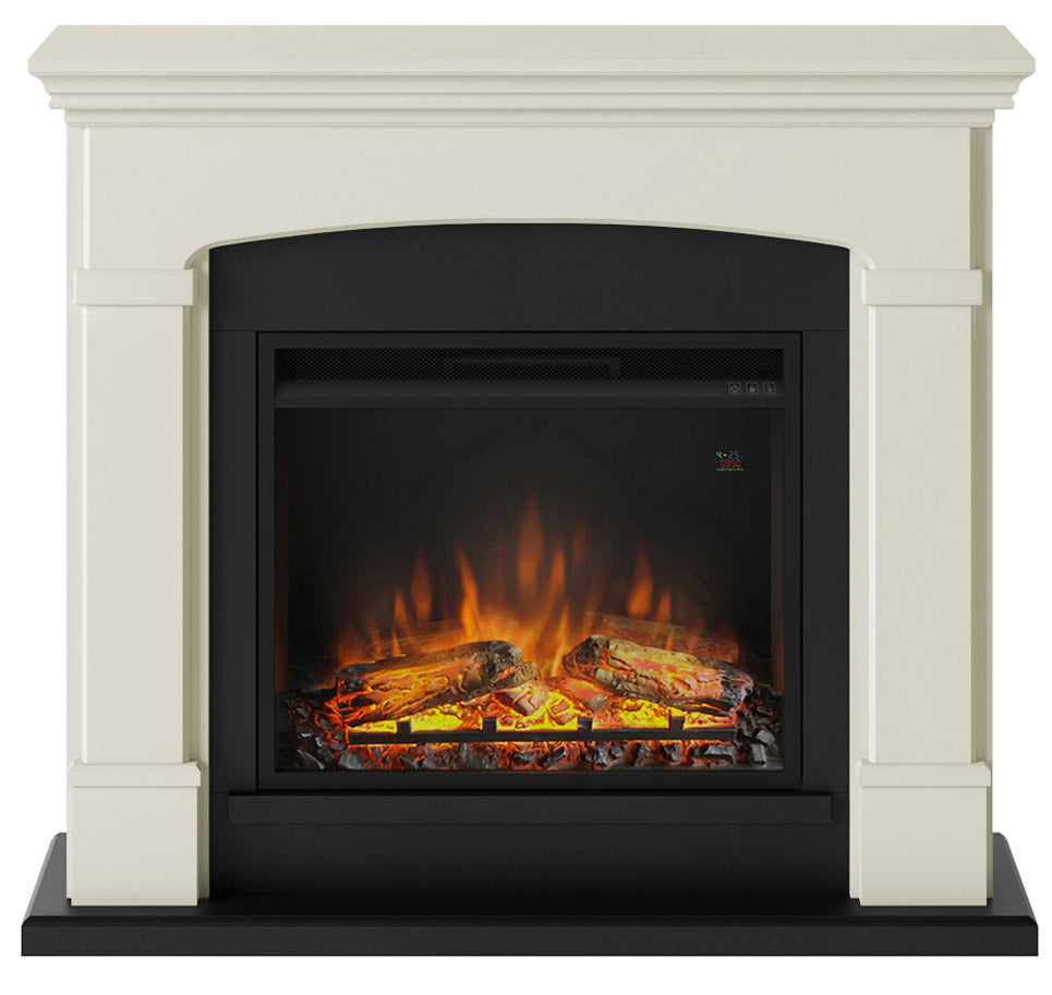 Helmi Elektrokamin mit Holzrahmen, 1500 W, Kamin mit 23-Zoll-Elektrokamineinsatz, Fernbedienung, cremeweiße Farbe.