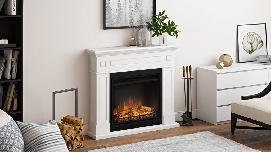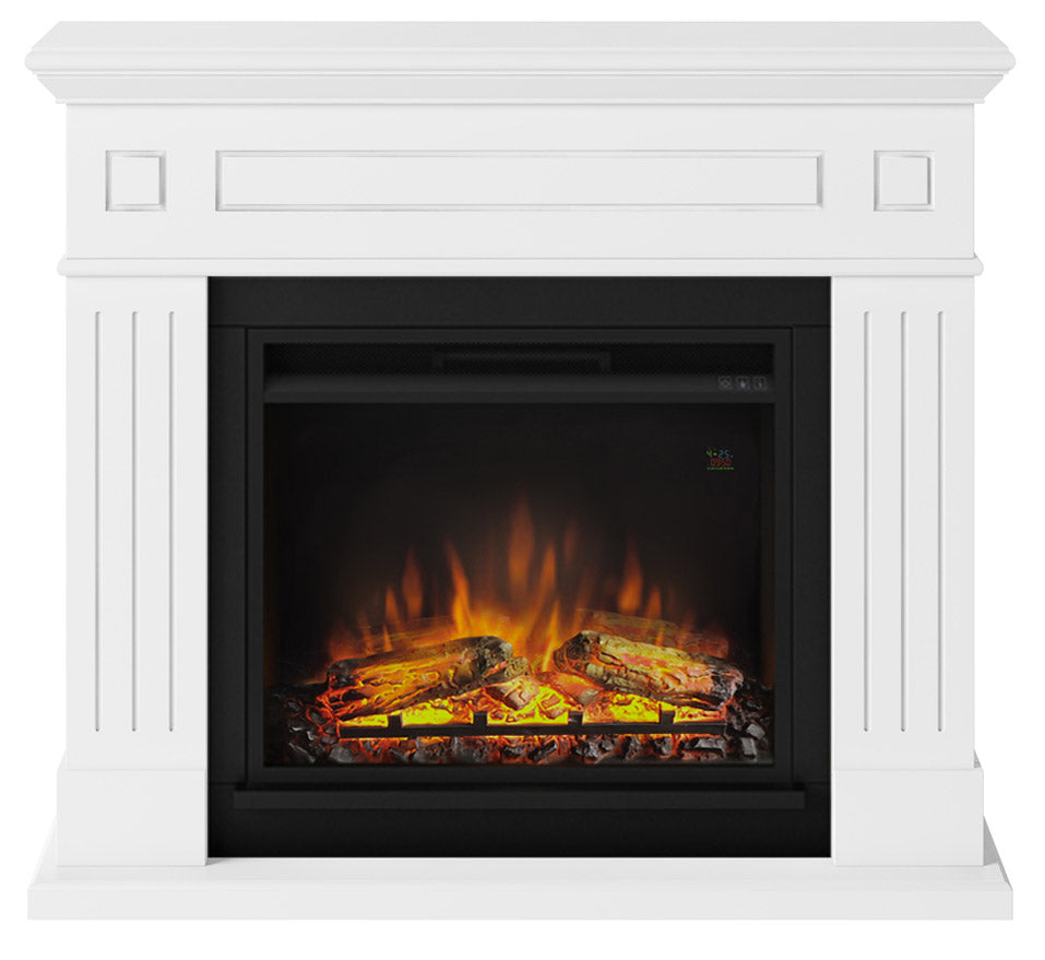 Larsen Elektrokamin mit Holzrahmen, 1500 W, Kamin mit 23-Zoll-Elektrokamineinsatz, Fernbedienung, Farbe Weiß [Energieklasse A].