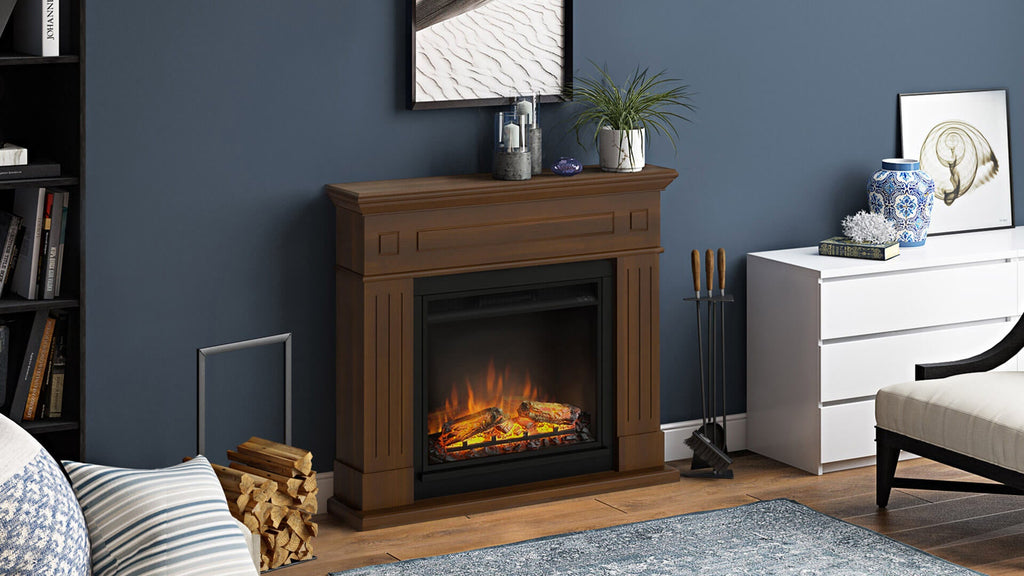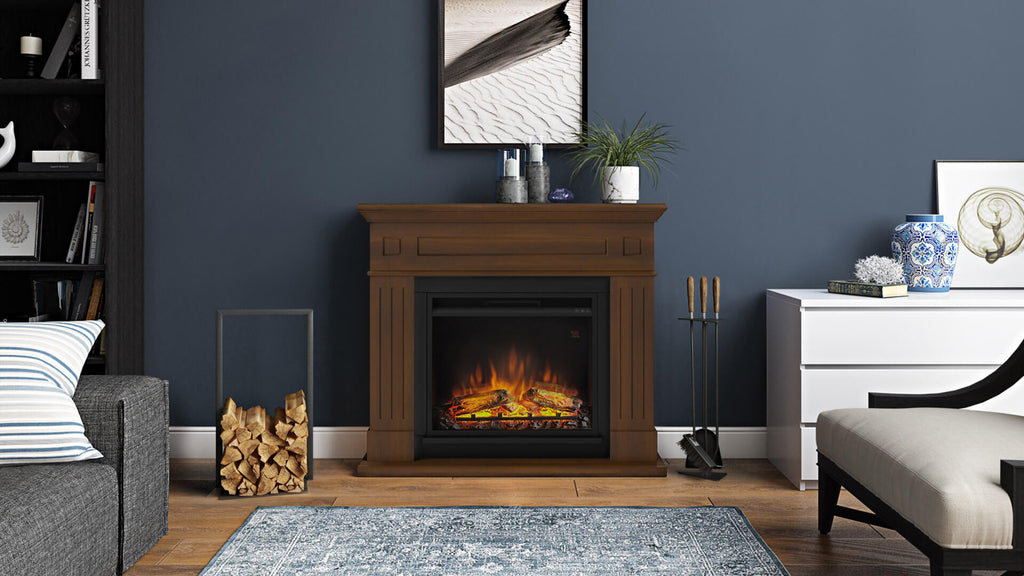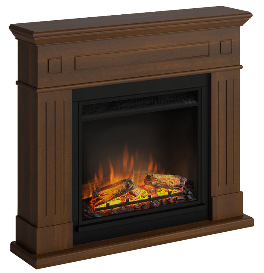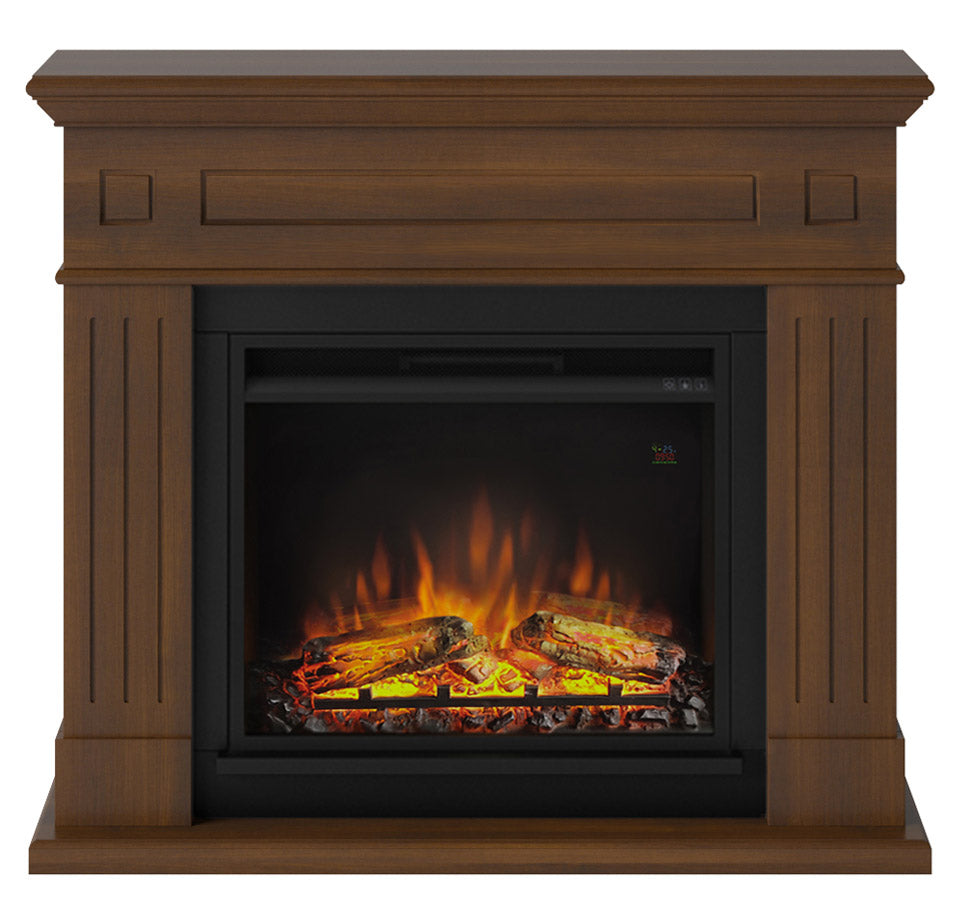 Larsen Elektrokamin mit Holzrahmen, 1500 W, Kamin mit 23-Zoll-Elektrokamineinsatz, Fernbedienung, Walnussfarbe [Energieklasse A].