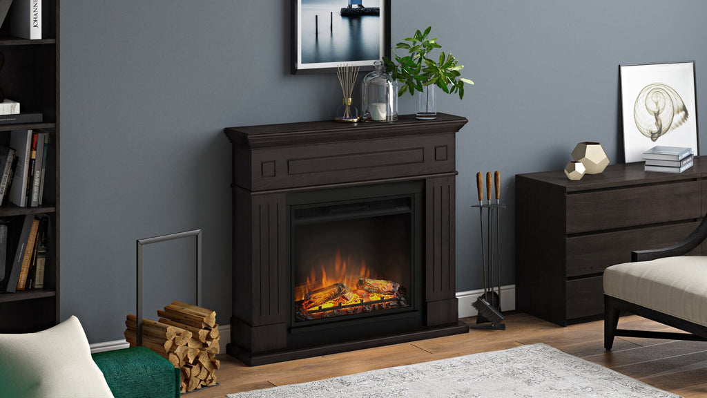 Larsen Elektrokamin mit Holzrahmen, 1500 W, Kamin mit 23-Zoll-Elektrokamineinsatz, Fernbedienung, Farbe Wenge [Energieklasse A].