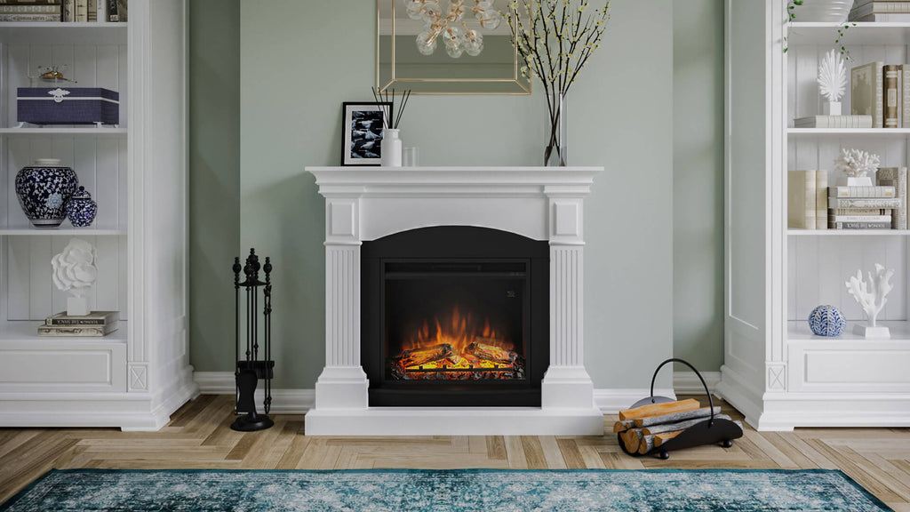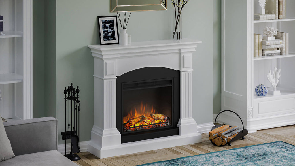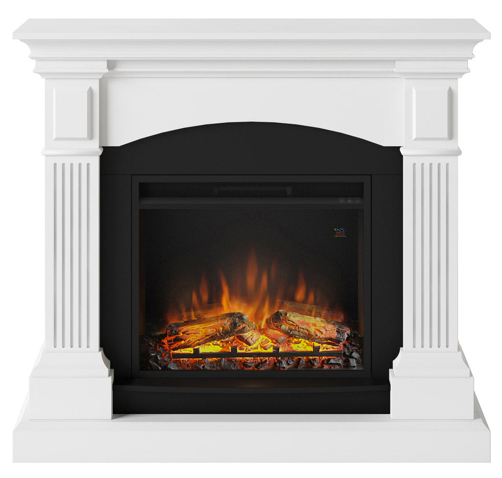 Magna Elektrokamin mit Holzrahmen, 1500 W, Kamin mit 23-Zoll-Elektrokamineinsatz, Fernbedienung, Farbe Weiß.