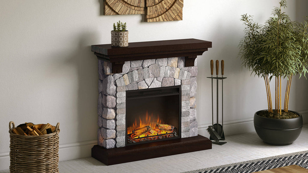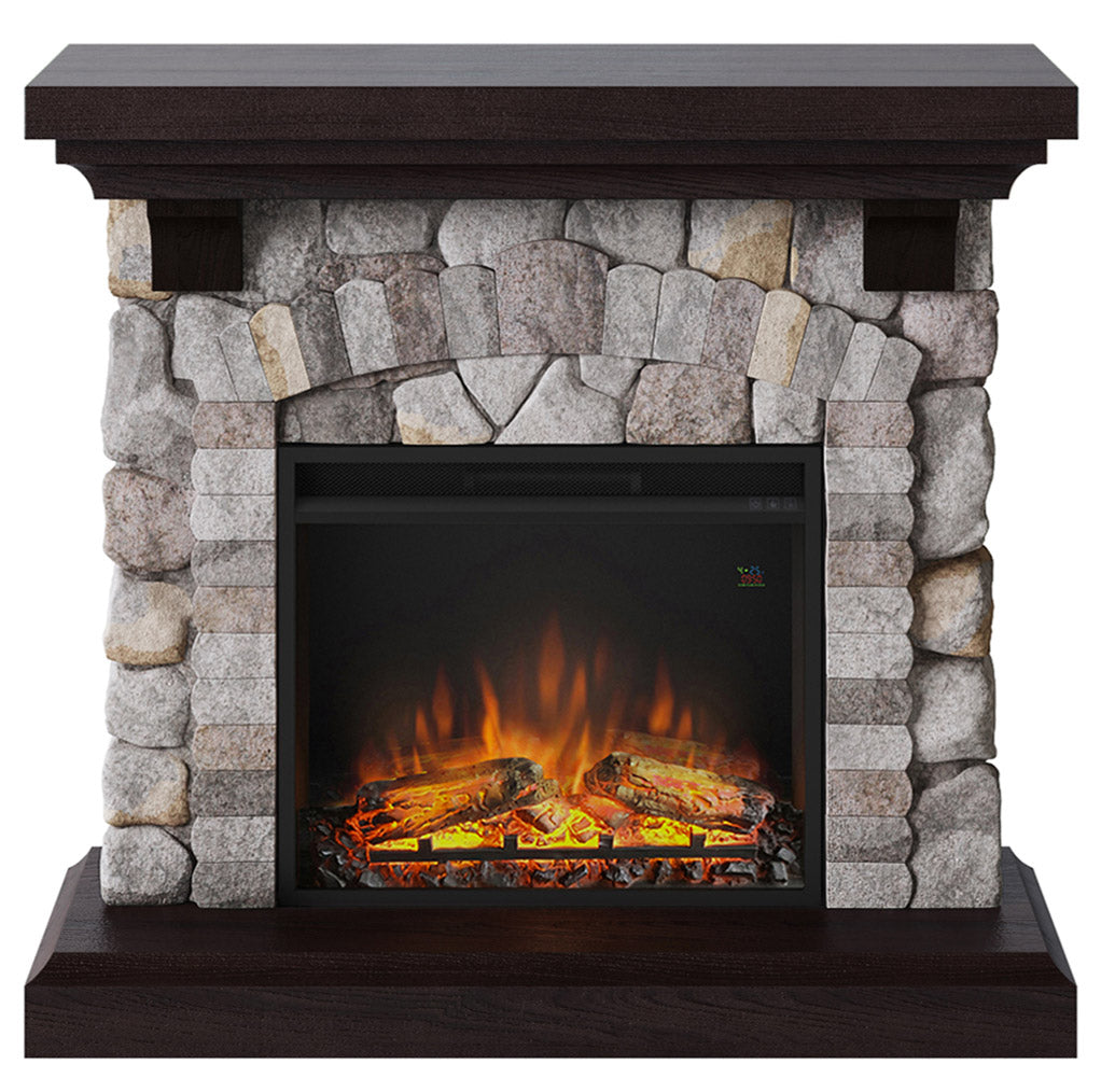 Reino Elektrokamin mit Holzrahmen, 1500 W, Kamin mit 23-Zoll-Elektrokamineinsatz, Fernbedienung, Farbe Rock Grey.