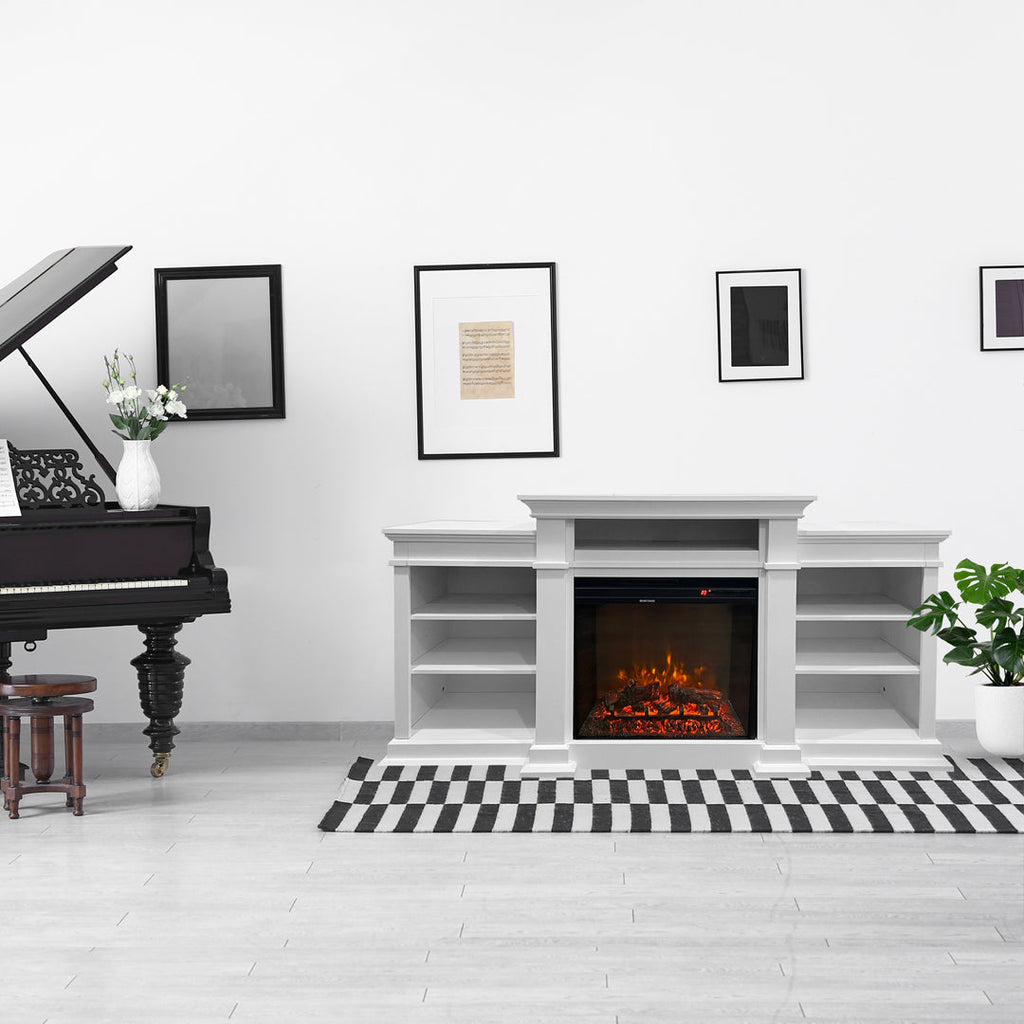 Elektrischer Bodenkamin Flammeneffekt 179 x 48 x 85 cm 900 W/1800 W in weißem Holz