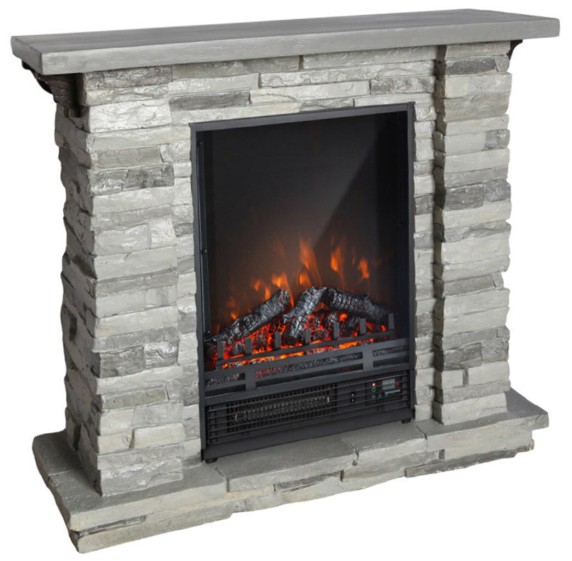 Elektrischer Bodenkamin Flammeneffekt 1800W Tugullio grauer Steineffekt