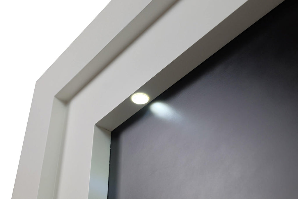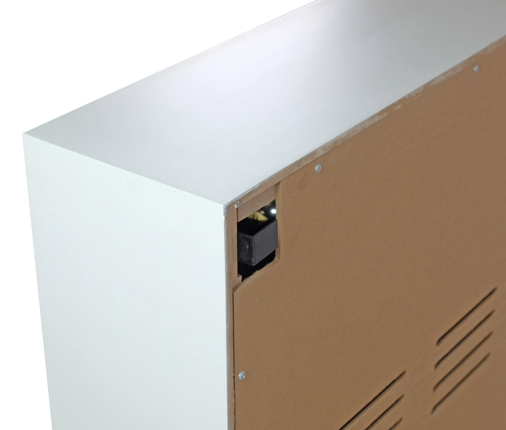 Hampton ist ein Elektrokamin aus schwarzem und weißem MDF-Holz und einem Einsatz mit einem LED-Elektrokamin, der die Wirkung von Feuerflammen reproduziert. Das Hinzufügen von zwei LEDs an der Oberseite des Rahmens bringt das elegante Design dieses Kamins voll zur Geltung. Es ist ein schönes Produkt mit einem nüchternen und eleganten Design, das sich leicht an jede Umgebung anpassen lässt. Das Besondere an diesem Kamin ist, dass er komplett montiert geliefert wird, sodass Sie ihn nur noch auspacken und anschließen müssen. Der Heißluftausstoß erfolgt von vorne, und die Leistung kann dank des Thermostats gewählt werden, wobei zwischen 1000 und 2000 W gewählt werden kann.