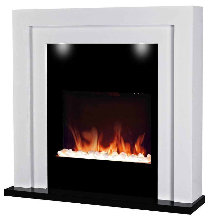 Chemin'Arte Hampton Elektrischer Bodenkamin mit Flammeneffekt, 2000 W, Schwarz und Weiß