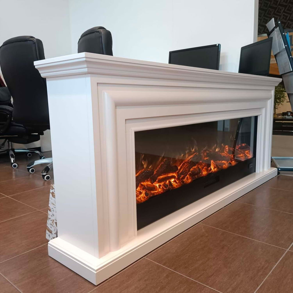 Camino Elettrico da Pavimento Effetto Fiamma 200x33x83 cm 1500W Sined Merapi Bianco