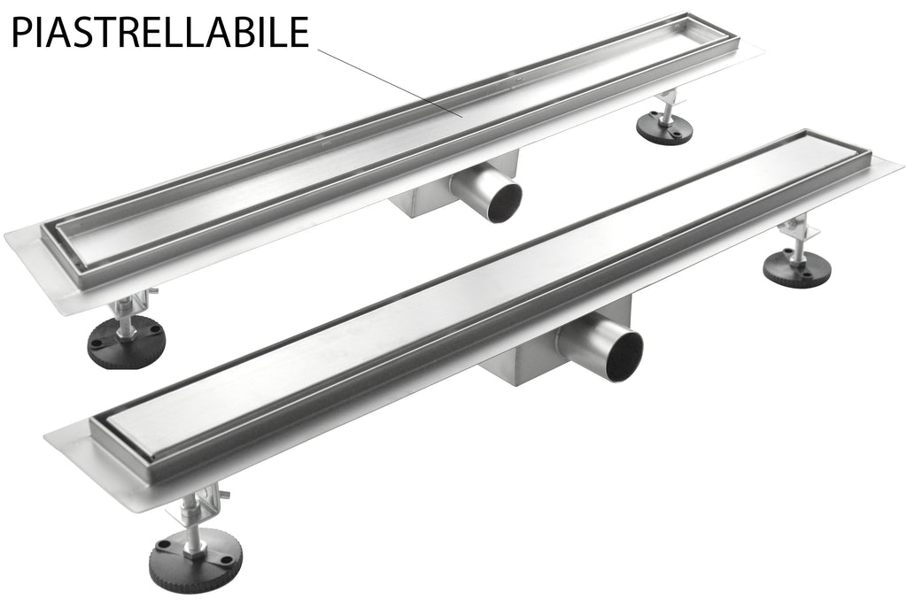 Ablaufrinne aus Edelstahl Aisi für bodenstehende Duschwannen.