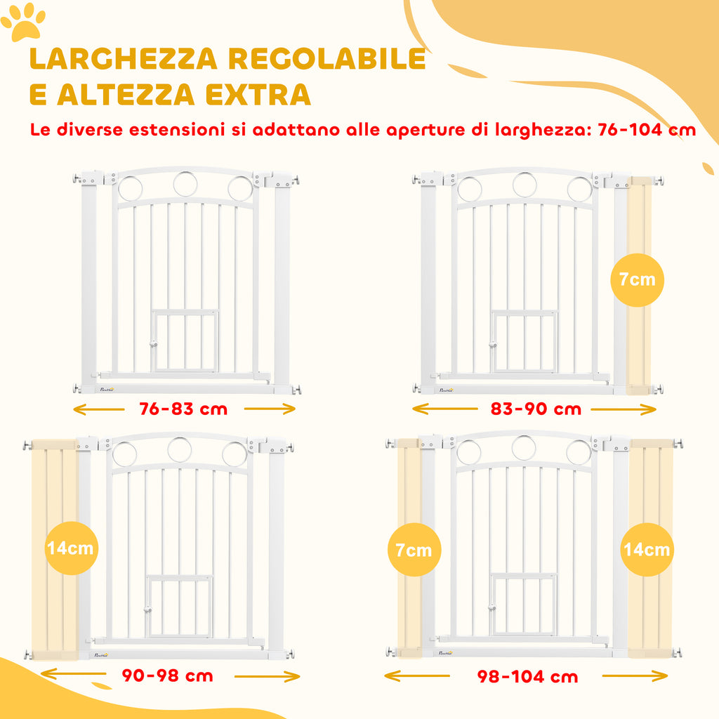 Cancelletto di Sicurezza per Animali con Estensioni 76-104 cm Porta per Gatti Bianco