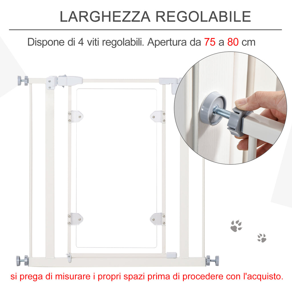 - ABMESSUNGEN: Gesamtabmessungen: 76,9–81,9 T x 76,2 H cm (Breite verstellbar mit Schrauben). Größe der Acrylplatte: 31,5 D x 64,5 H cm. Eingangsbreite: 49,8 cm. Abstand zwischen den Pfosten: 5 cm. HINWEIS: Das Tor ist für Durchgänge mit einer Breite von 76,9 bis 81,9 cm geeignet, bitte messen Sie Ihre Abstände vor dem Kauf.