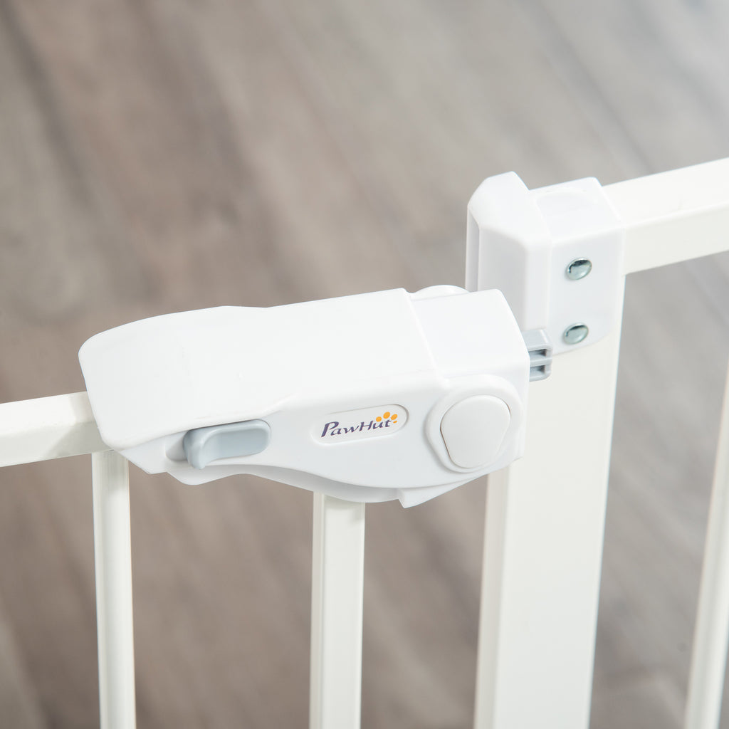 Cancelletto di Sicurezza per Cani con Porta Piccola Montaggio a Pressione Chiusura Automatica 74-80x91,4 cm Bianco
