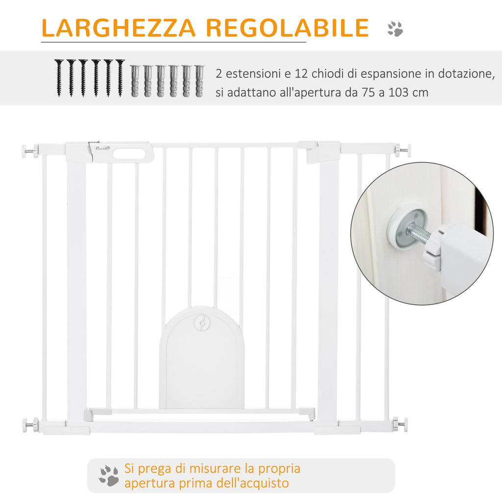 Cancelletto di Sicurezza per Cani con Porta Piccola Regolabile e Chiusura Automatica 75-103x76 cm Bianco